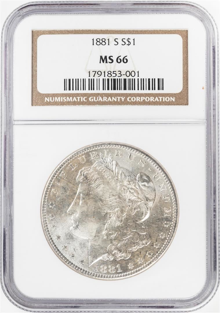 One 1881-S $1 Morgan Silver Dollar Coin NGC MS66. NGC Certified.