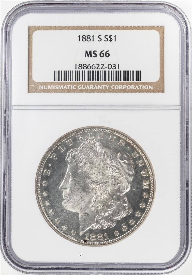 One 1881-S $1 Morgan Silver Dollar Coin NGC MS66. NGC Certified.