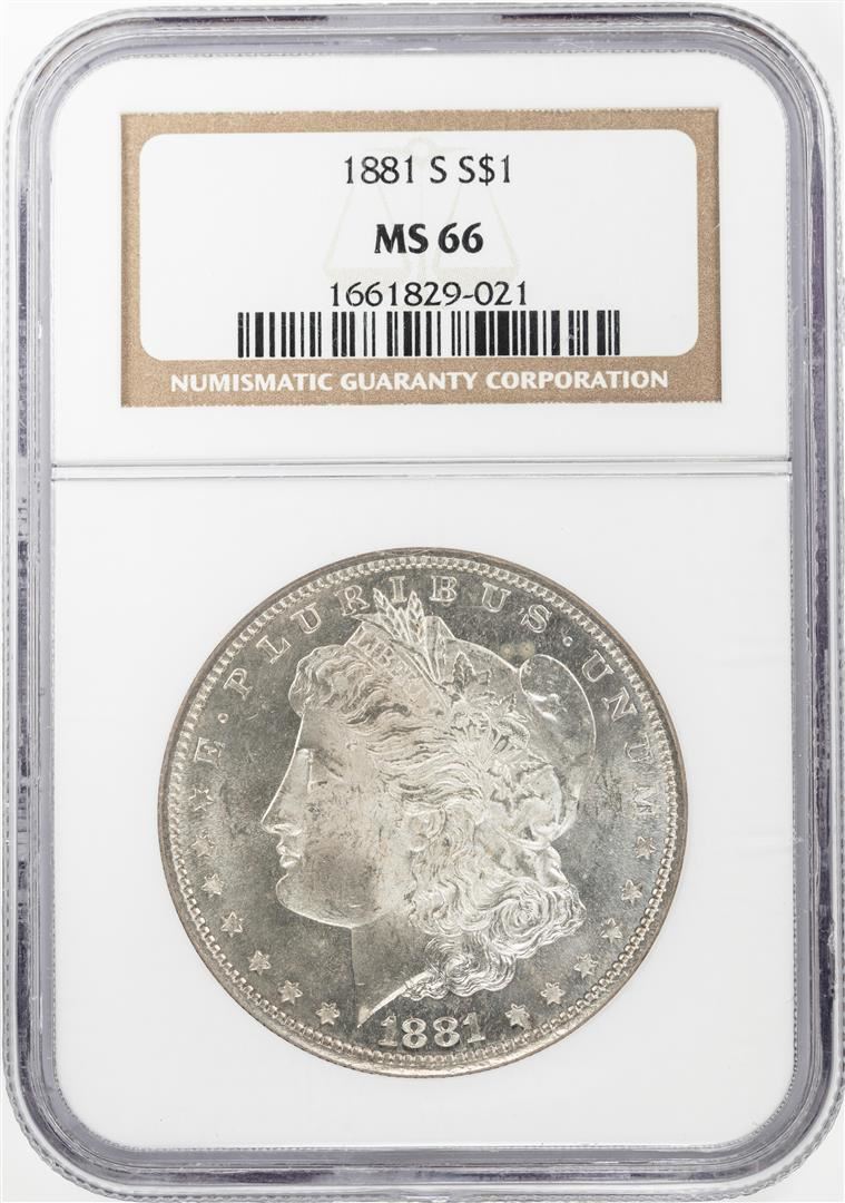 One 1881-S $1 Morgan Silver Dollar Coin NGC MS66. NGC Certified.