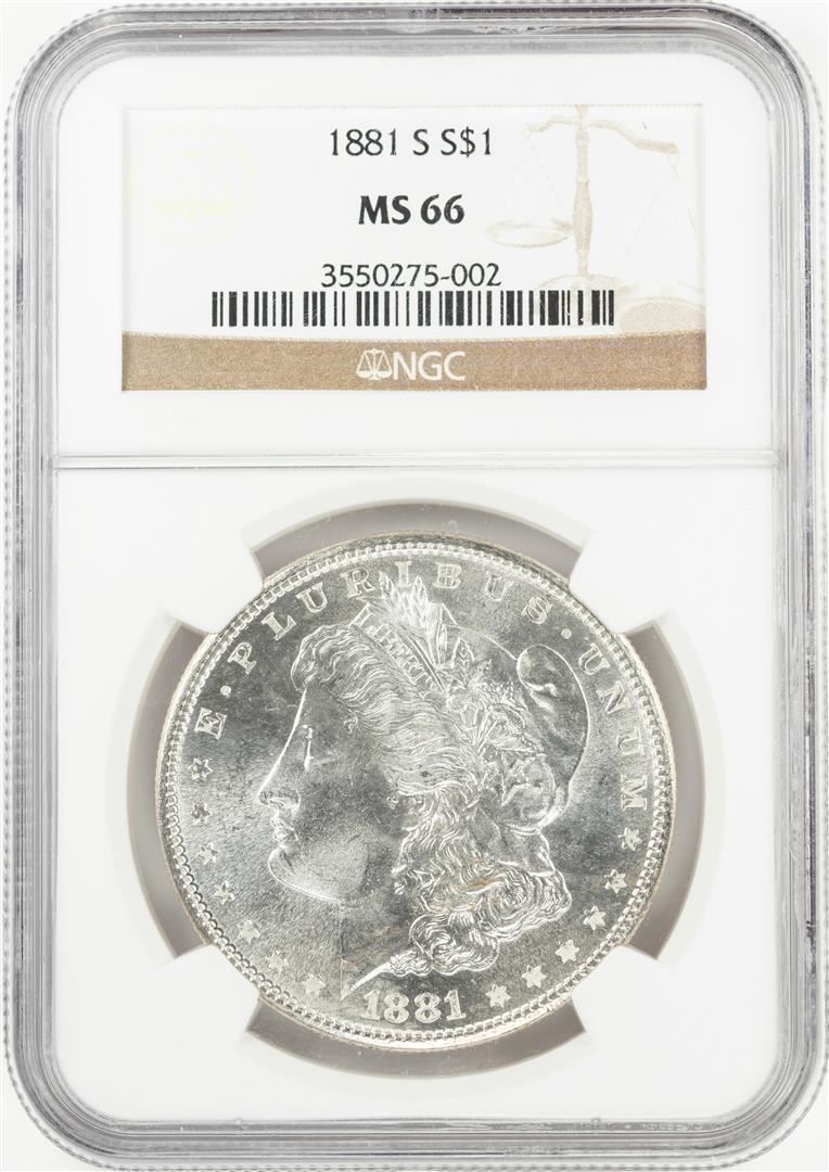 One 1881-S $1 Morgan Silver Dollar Coin NGC MS66. NGC Certified.