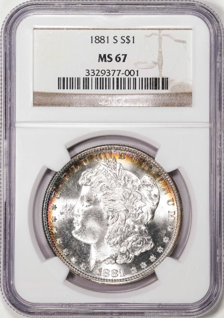 One 1881-S $1 Morgan Silver Dollar Coin NGC MS67 Amazing Toning. NGC Certified.