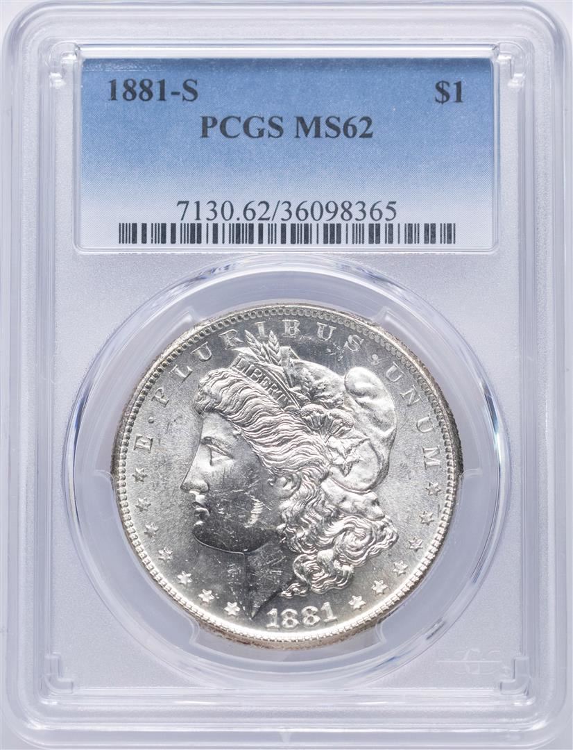 One 1881-S $1 Morgan Silver Dollar Coin PCGS MS62. PCGS Graded.
