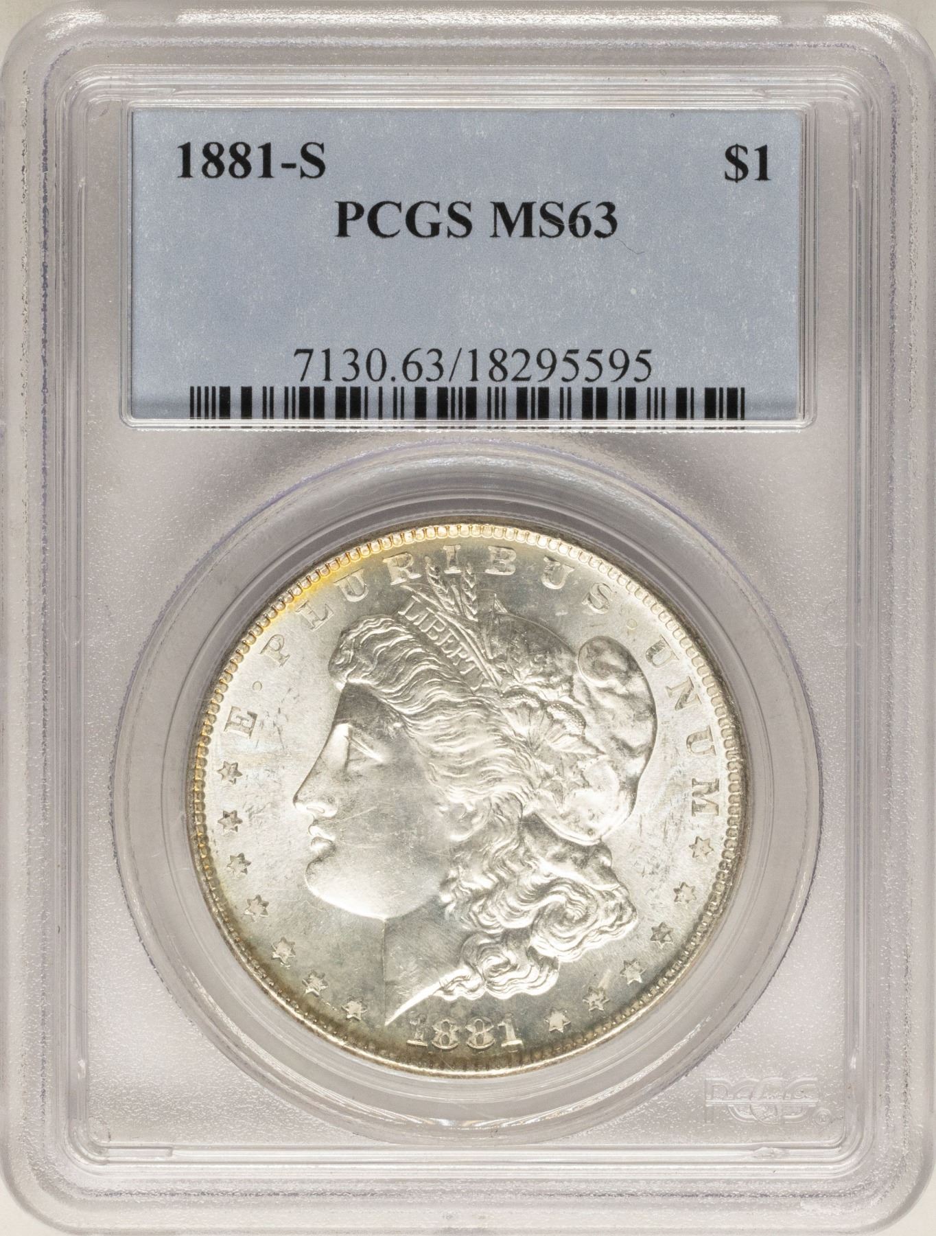 One 1881-S $1 Morgan Silver Dollar Coin PCGS MS63 Amazing Rainbow Toning.