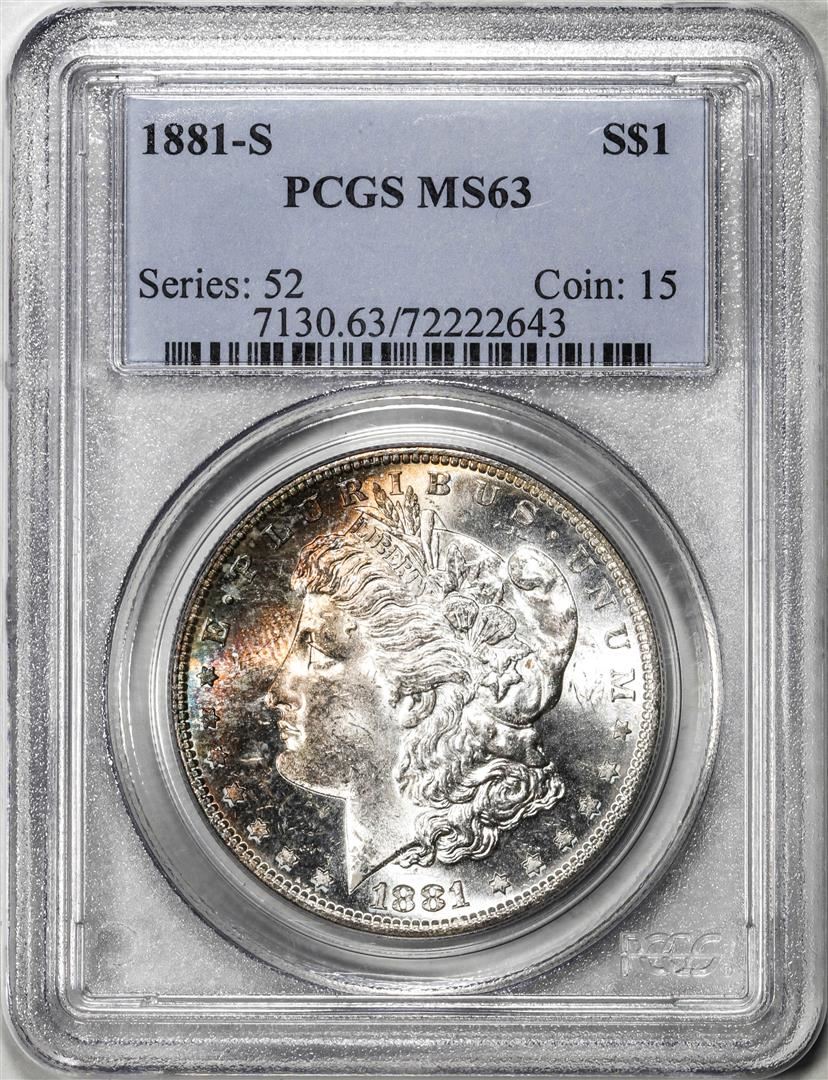 One 1881-S $1 Morgan Silver Dollar Coin PCGS MS63 Amazing Toning. PCGS Graded.