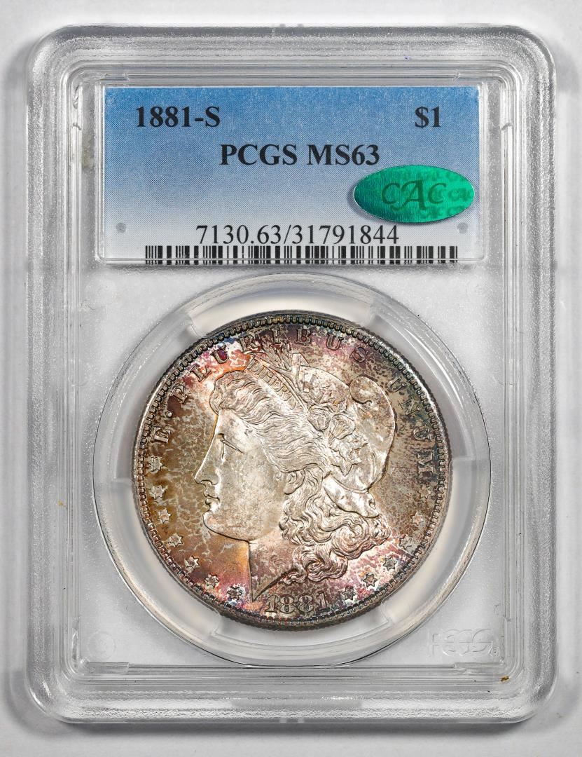 1881-S $1 Morgan Silver Dollar Coin PCGS MS63 Great Toning CAC