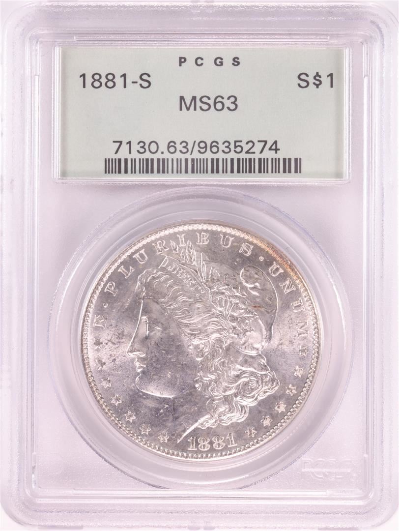 One 1881-S $1 Morgan Silver Dollar Coin PCGS MS63 Old Green Holder. PCGS Graded.