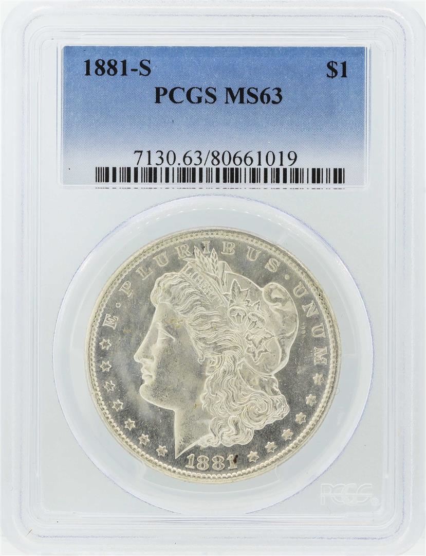 One 1881-S $1 Morgan Silver Dollar Coin PCGS MS63. PCGS Graded.