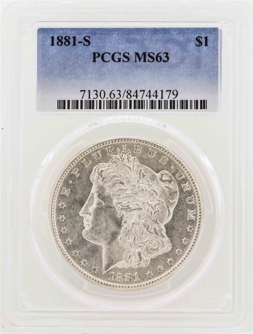 One 1881-S $1 Morgan Silver Dollar Coin PCGS MS63. PCGS Graded.