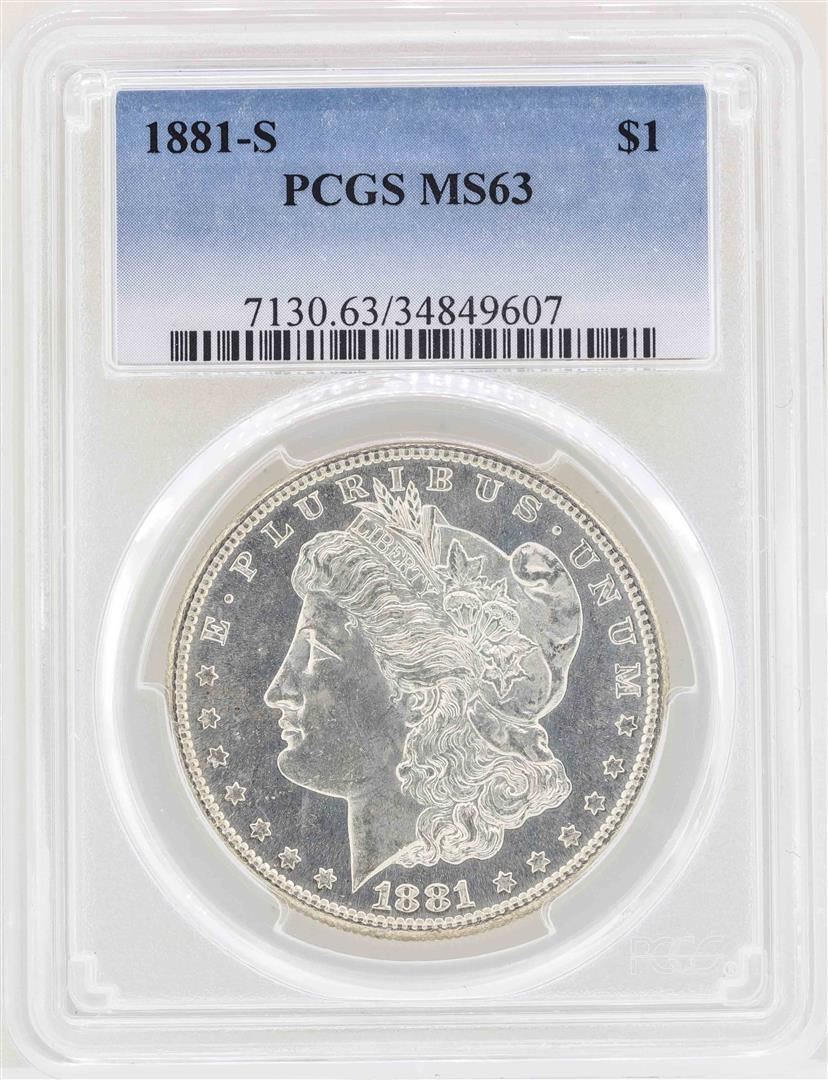 One 1881-S $1 Morgan Silver Dollar Coin PCGS MS63. PCGS Graded.