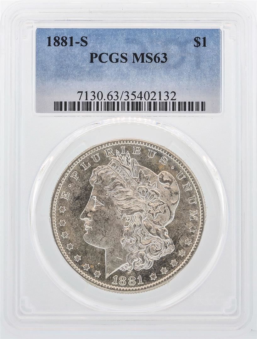One 1881-S $1 Morgan Silver Dollar Coin PCGS MS63. PCGS Certified.