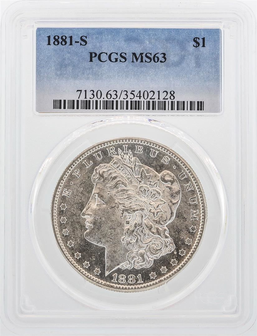 One 1881-S $1 Morgan Silver Dollar Coin PCGS MS63. PCGS Certified.