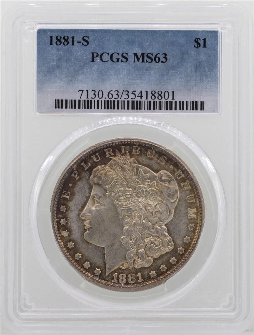One 1881-S $1 Morgan Silver Dollar Coin PCGS MS63. PCGS Graded.
