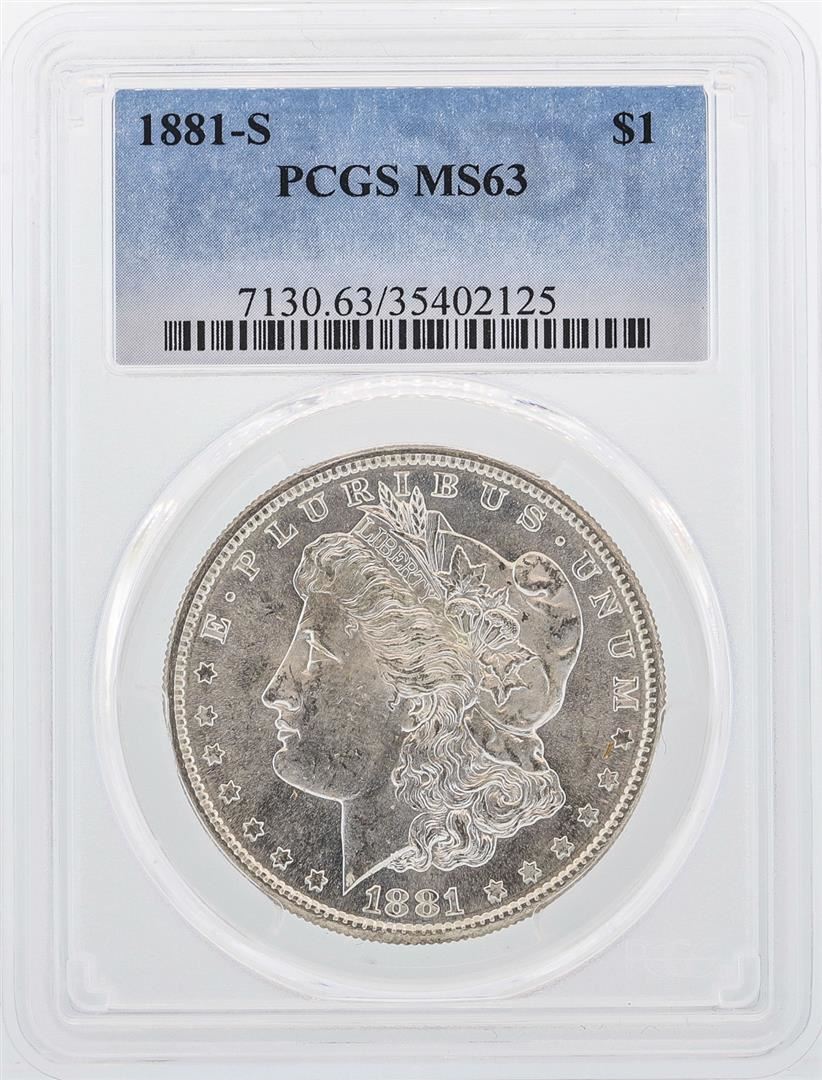 One 1881-S $1 Morgan Silver Dollar Coin PCGS MS63. PCGS Graded.