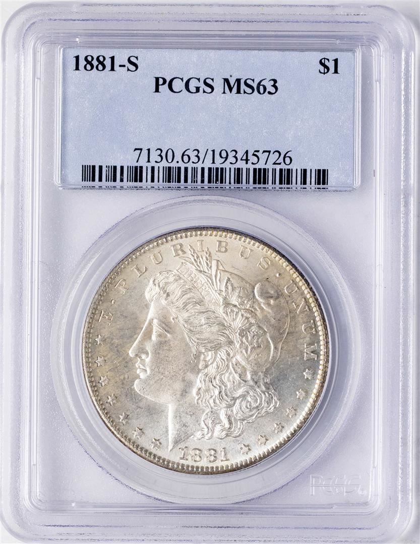 One 1881-S $1 Morgan Silver Dollar Coin PCGS MS63. PCGS Graded.