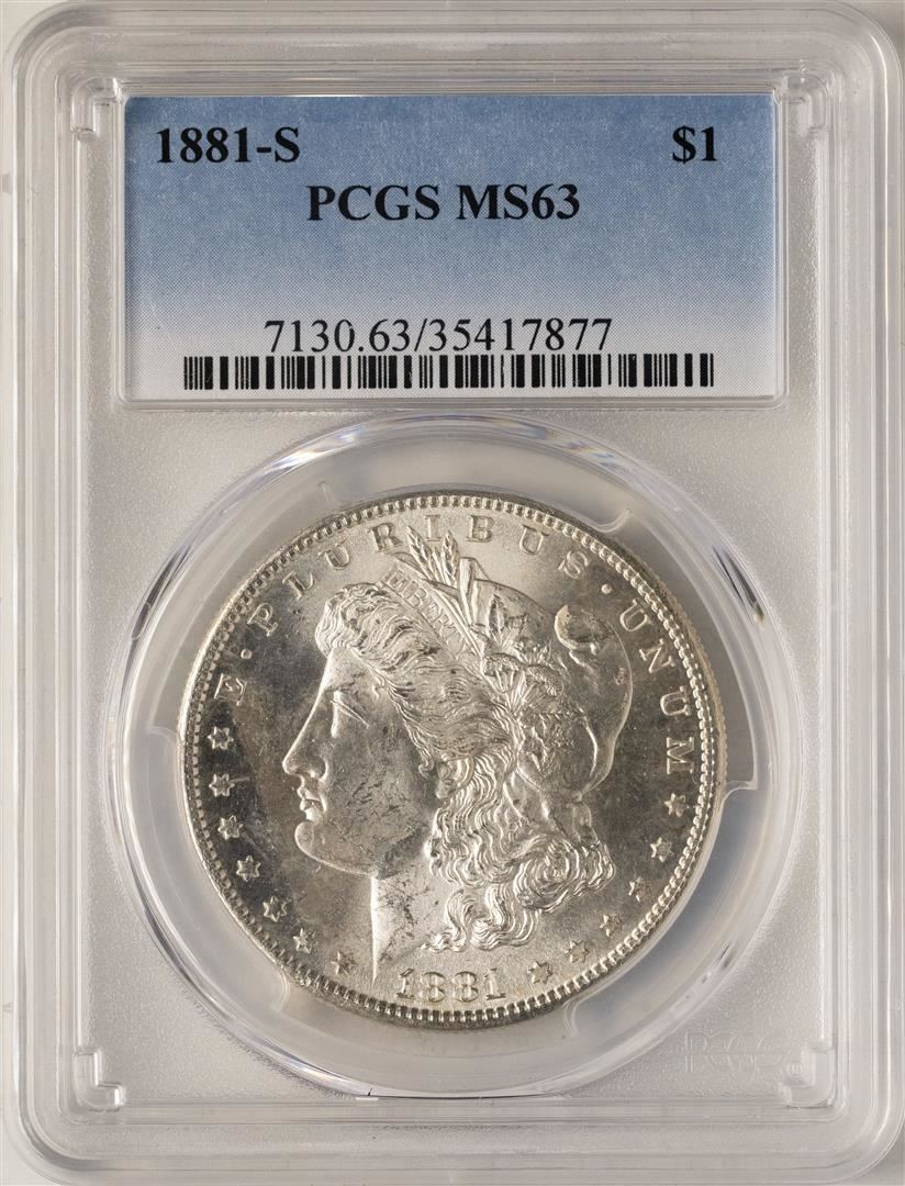 One 1881-S $1 Morgan Silver Dollar Coin PCGS MS63. PCGS Graded.