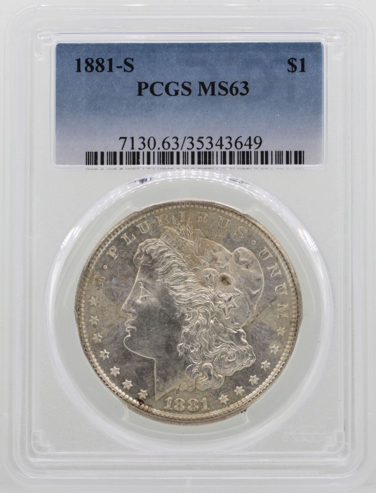 One 1881-S $1 Morgan Silver Dollar Coin PCGS MS63.