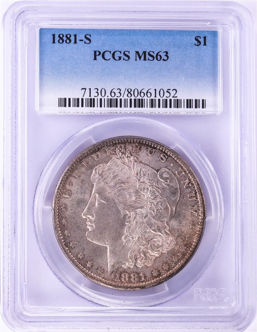 One 1881-S $1 Morgan Silver Dollar Coin PCGS MS63. PCGS Graded.