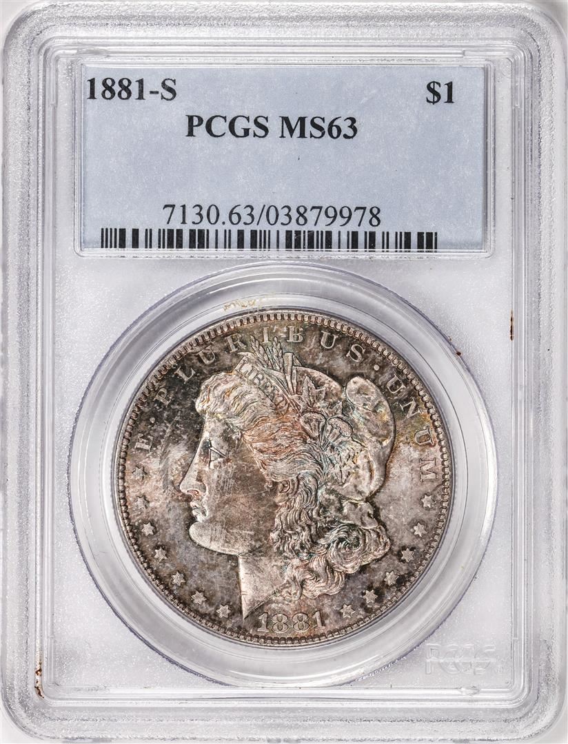 One 1881-S $1 Morgan Silver Dollar Coin PCGS MS63. PCGS Graded.