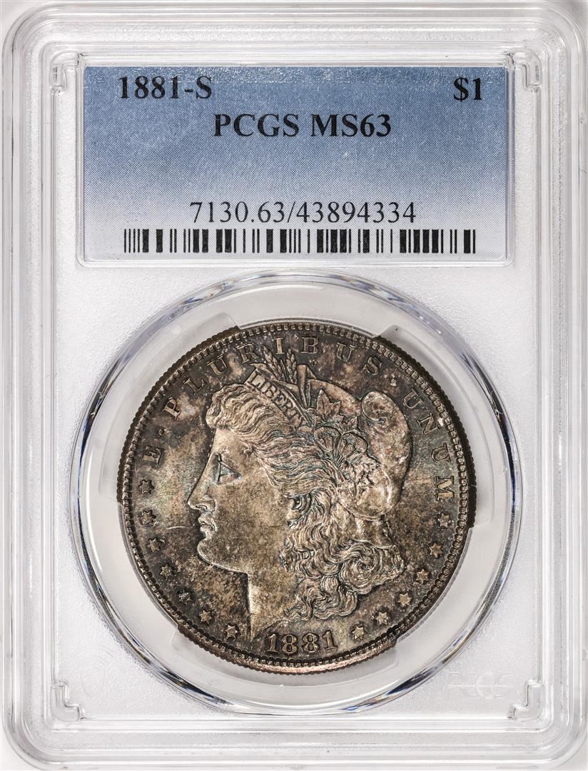 One 1881-S $1 Morgan Silver Dollar Coin PCGS MS63. PCGS Graded.