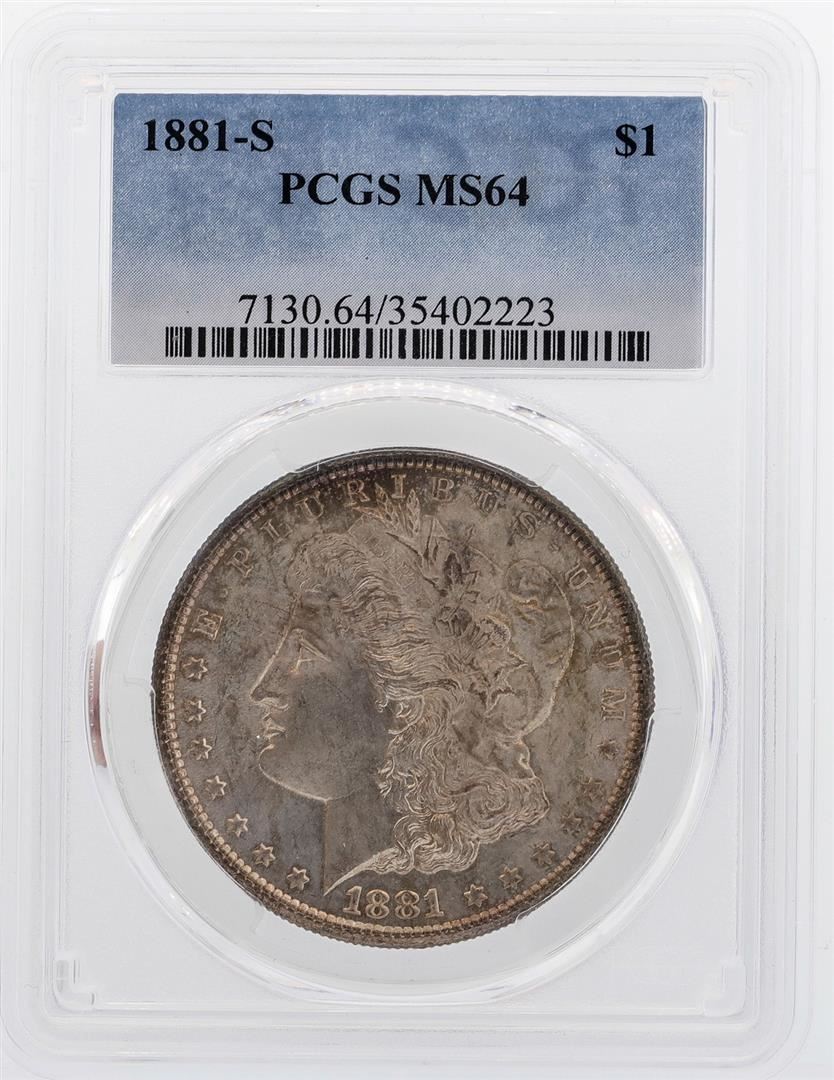 One 1881-S $1 Morgan Silver Dollar Coin PCGS MS64 Amazing Toning. PCGS Graded.