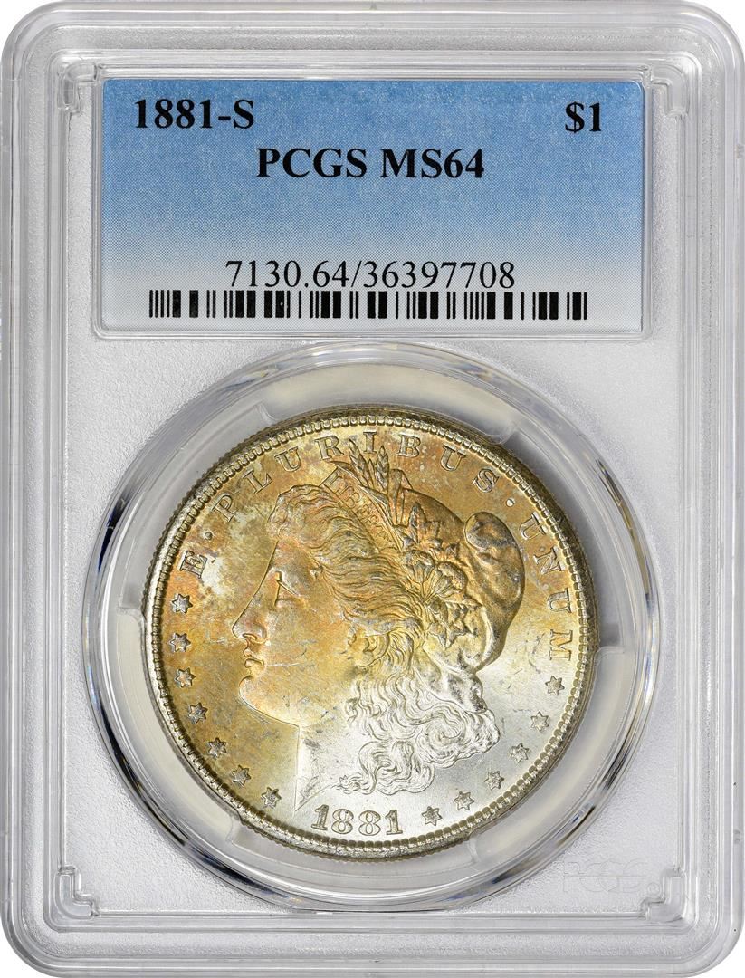One 1881-S $1 Morgan Silver Dollar Coin PCGS MS64 Amazing Toning.