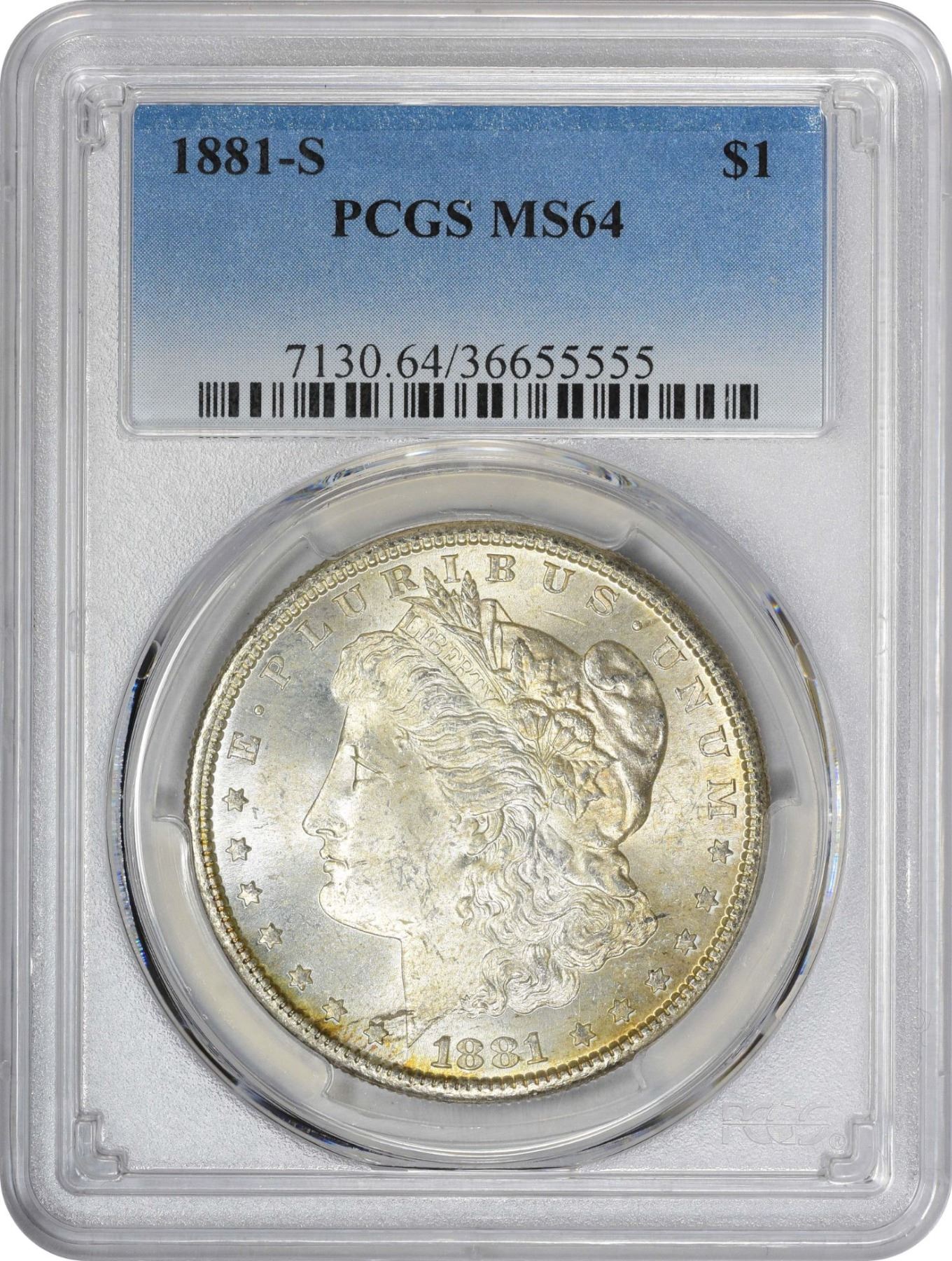 One 1881-S $1 Morgan Silver Dollar Coin PCGS MS64 Amazing Toning.