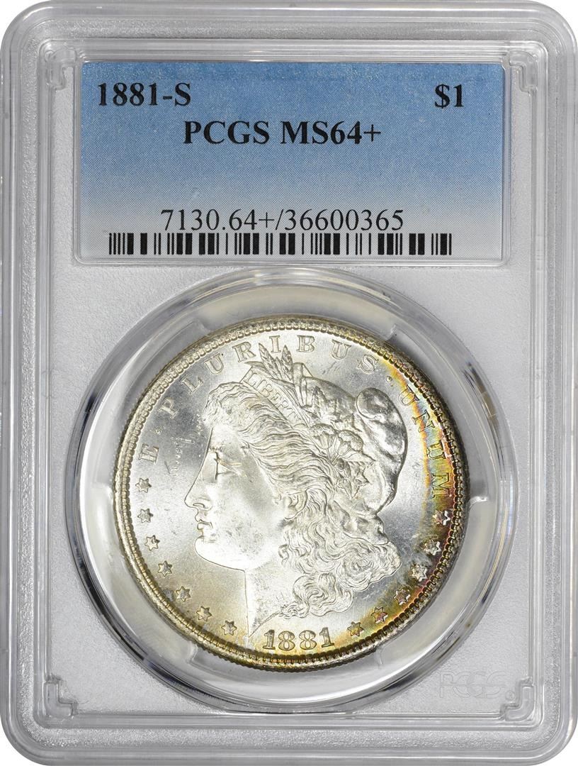 One 1881-S $1 Morgan Silver Dollar Coin PCGS MS64 Amazing Toning.