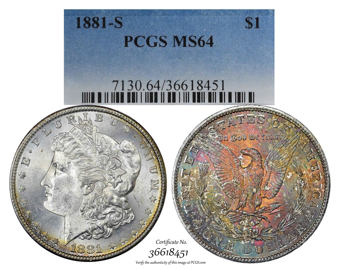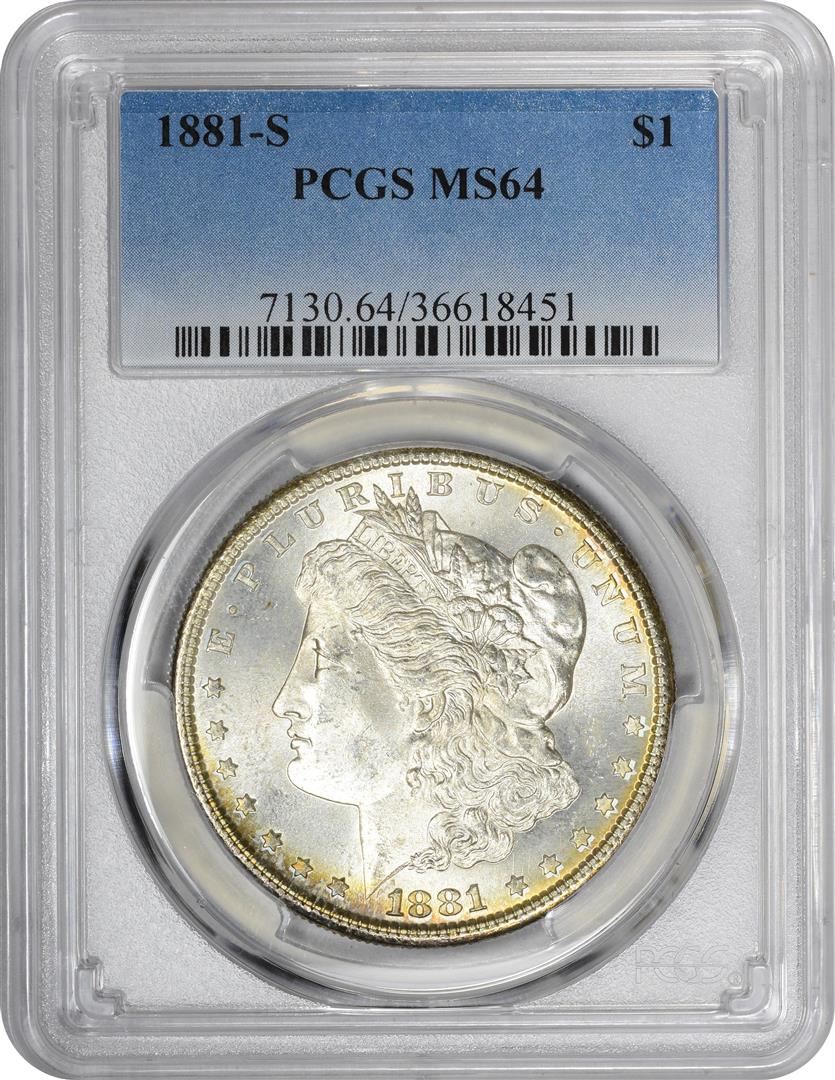 One 1881-S $1 Morgan Silver Dollar Coin PCGS MS64 Amazing Toning.