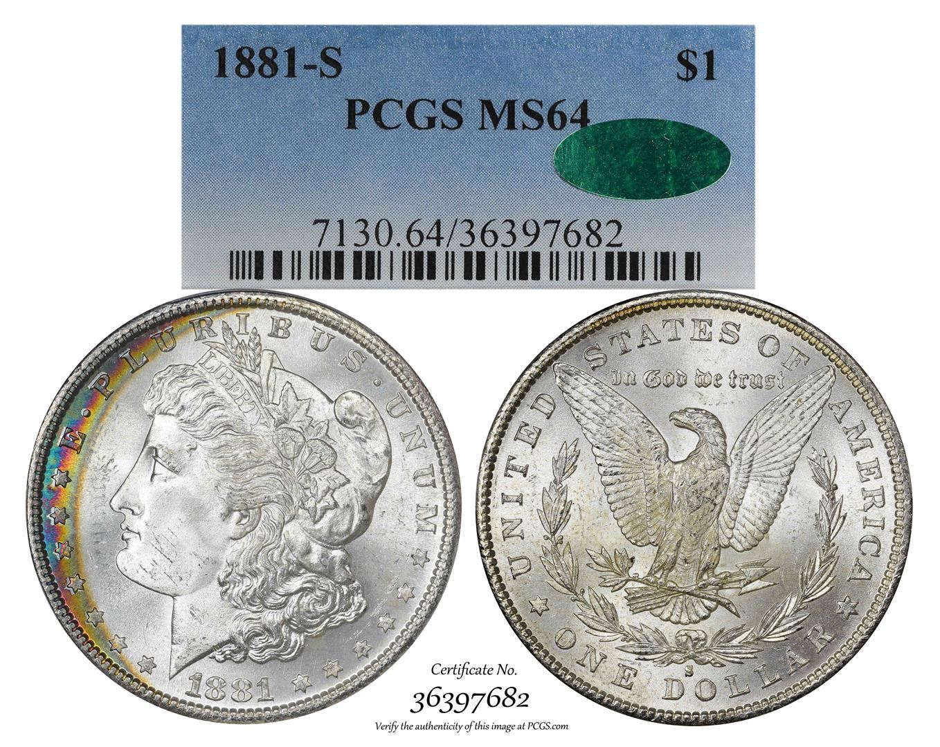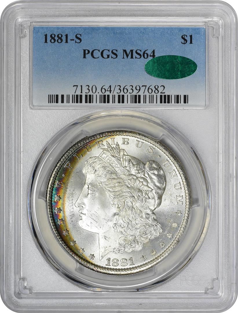 1881-S $1 Morgan Silver Dollar Coin PCGS MS64 CAC Amazing Toning