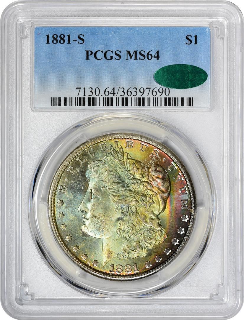 One 1881-S $1 Morgan Silver Dollar Coin PCGS MS64 CAC Amazing Toning.