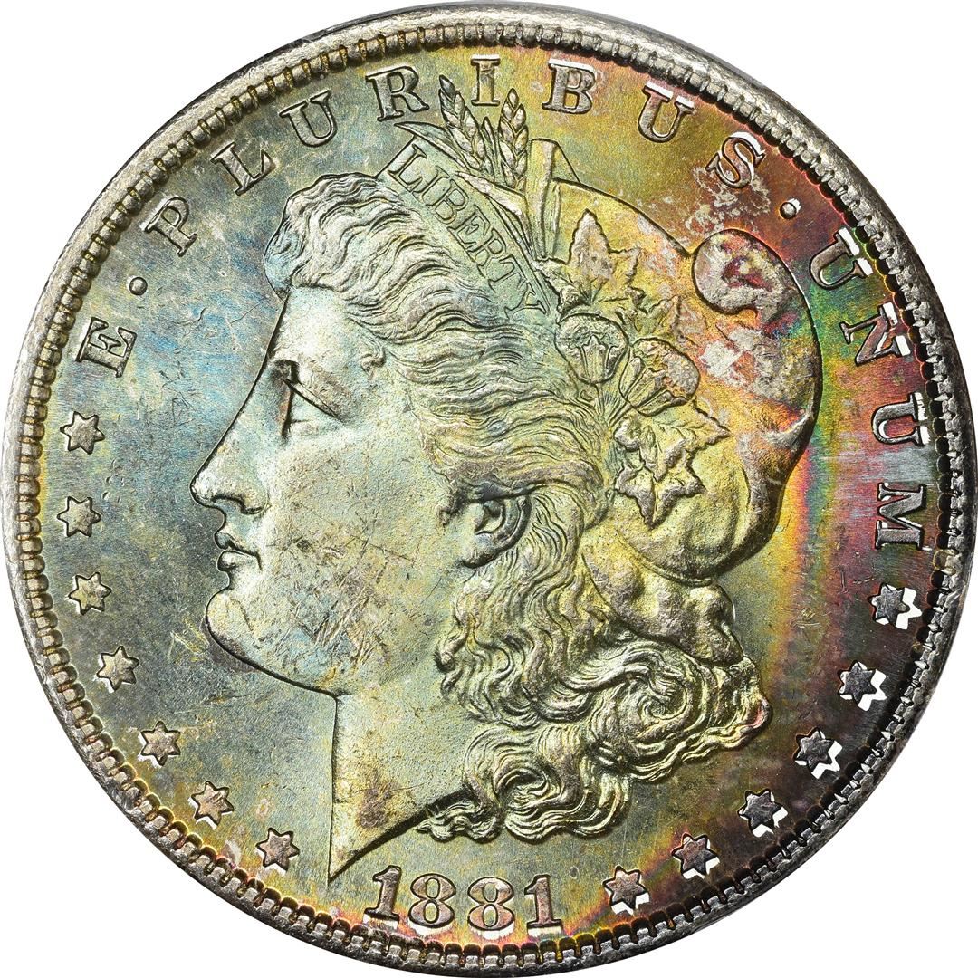 1881-S $1 Morgan Silver Dollar Coin PCGS MS64 CAC Amazing Toning