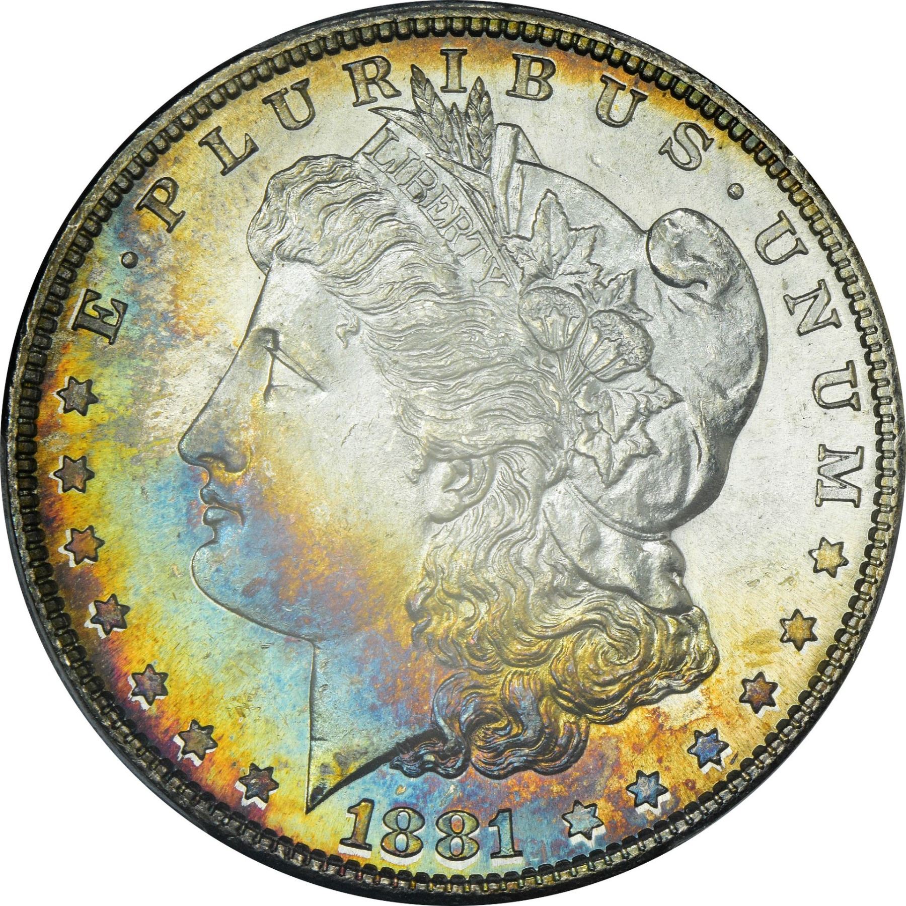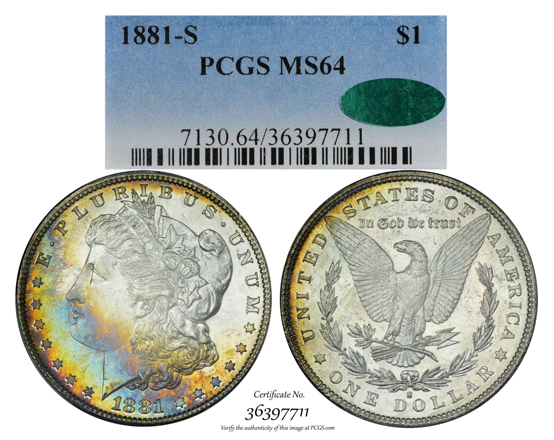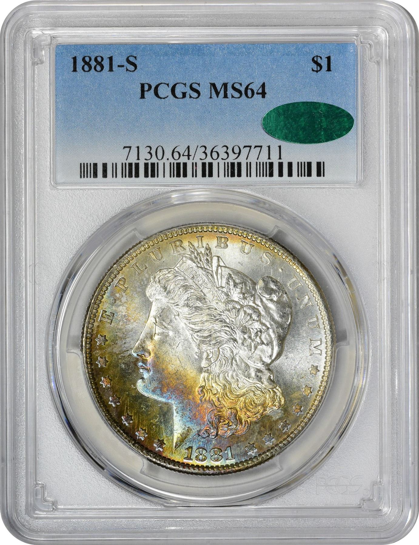 1881-S $1 Morgan Silver Dollar Coin PCGS MS64 CAC Amazing Toning