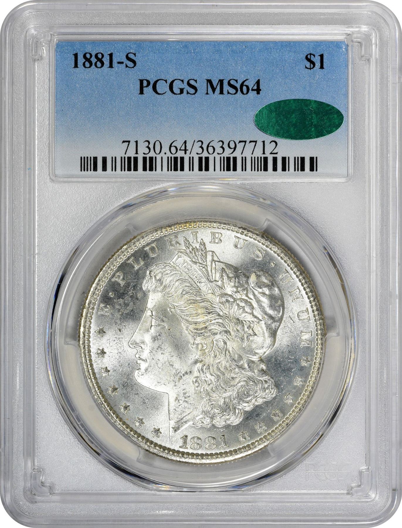 One 1881-S $1 Morgan Silver Dollar Coin PCGS MS64 CAC Amazing Toning.