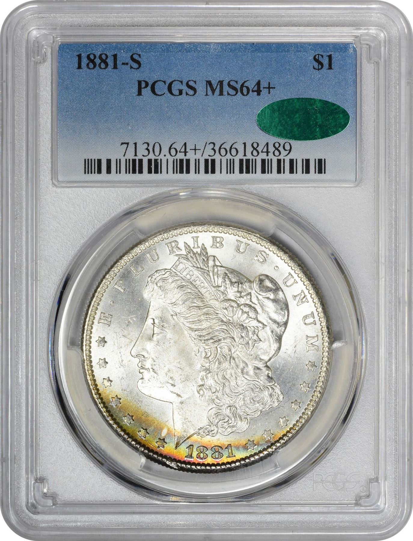 1881-S $1 Morgan Silver Dollar Coin PCGS MS64+ CAC Amazing Toning