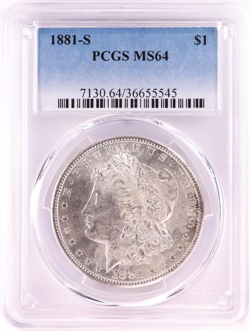 One 1881-S $1 Morgan Silver Dollar Coin PCGS MS64 Nice Toning. PCGS Graded.