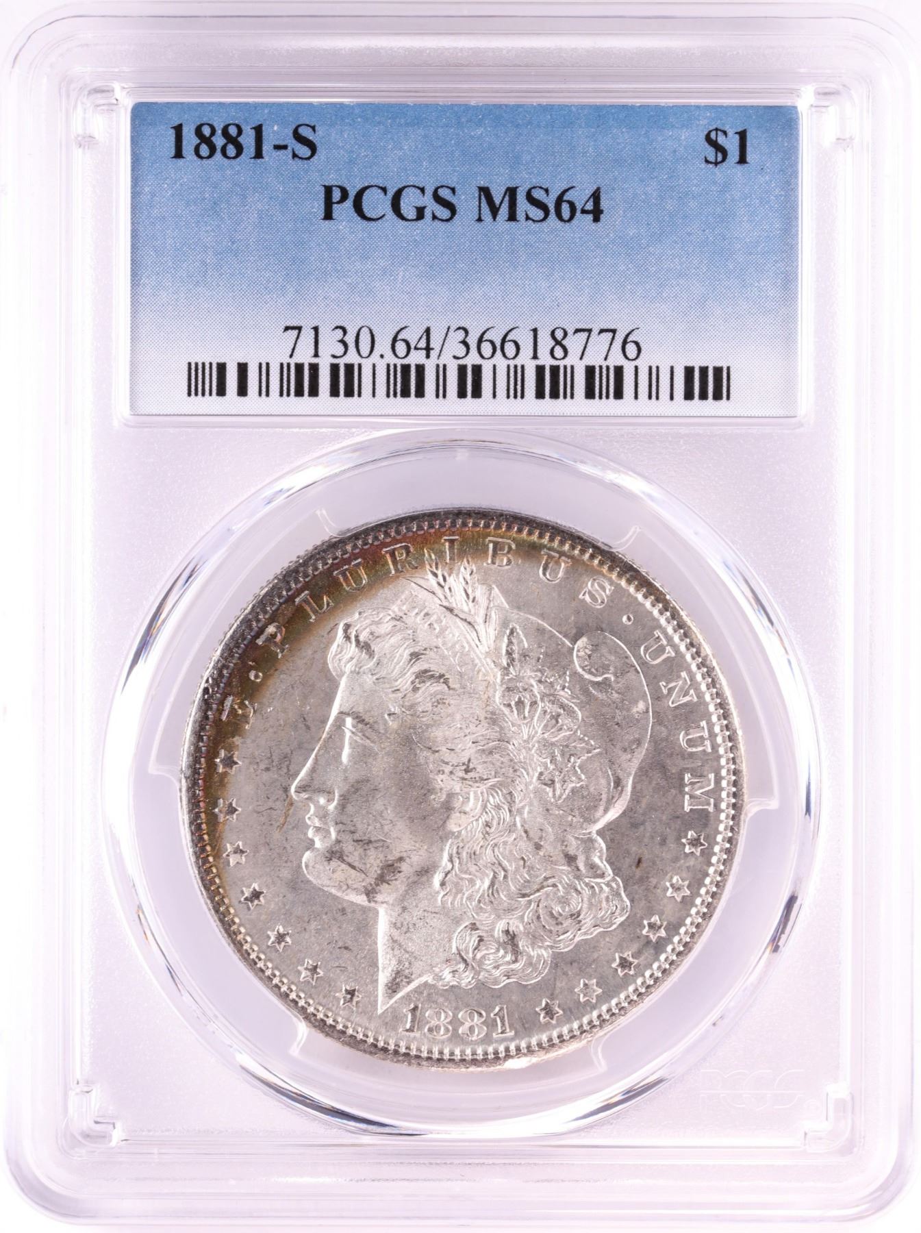 One 1881-S $1 Morgan Silver Dollar Coin PCGS MS64 Nice Toning.