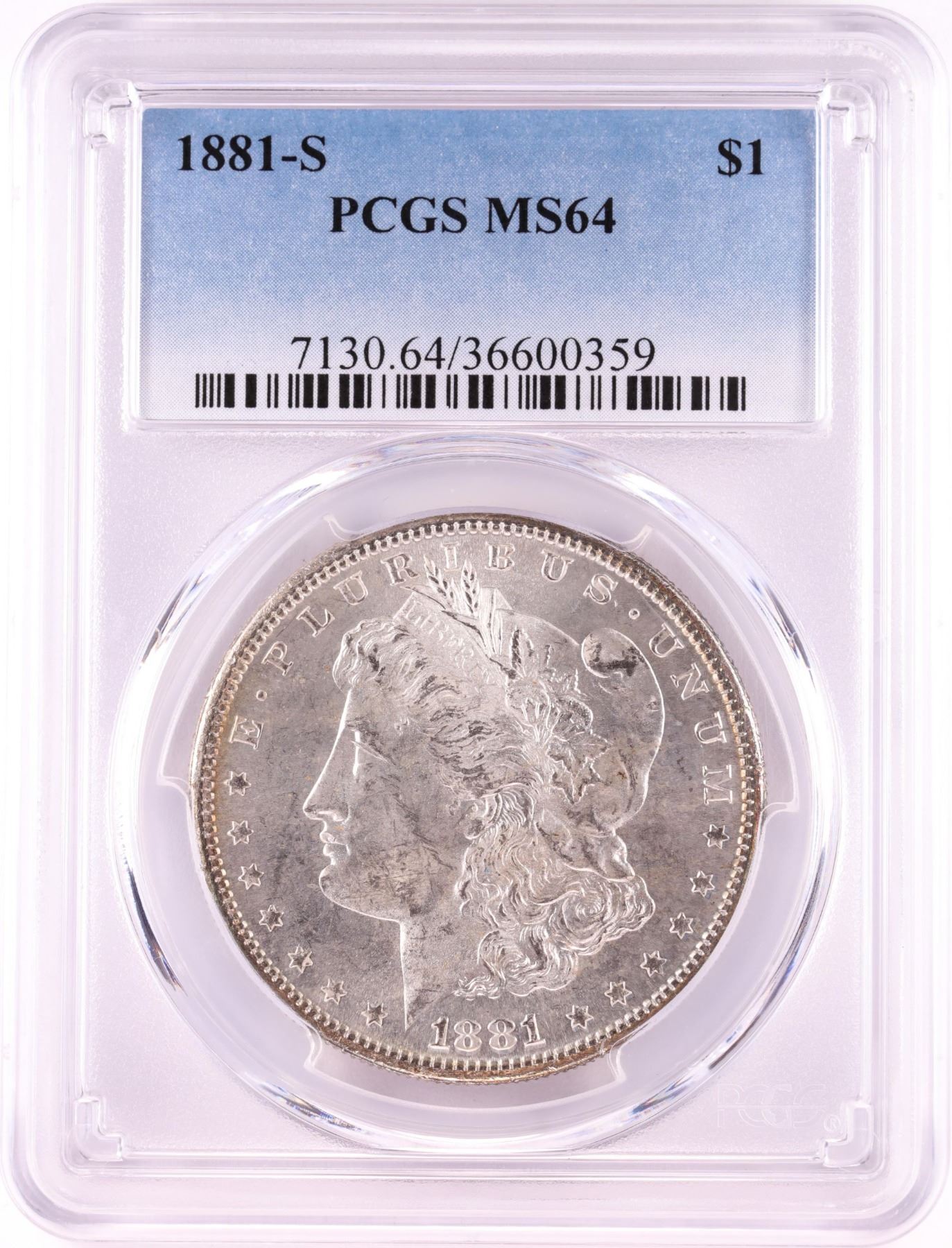 One 1881-S $1 Morgan Silver Dollar Coin PCGS MS64 Nice Toning.