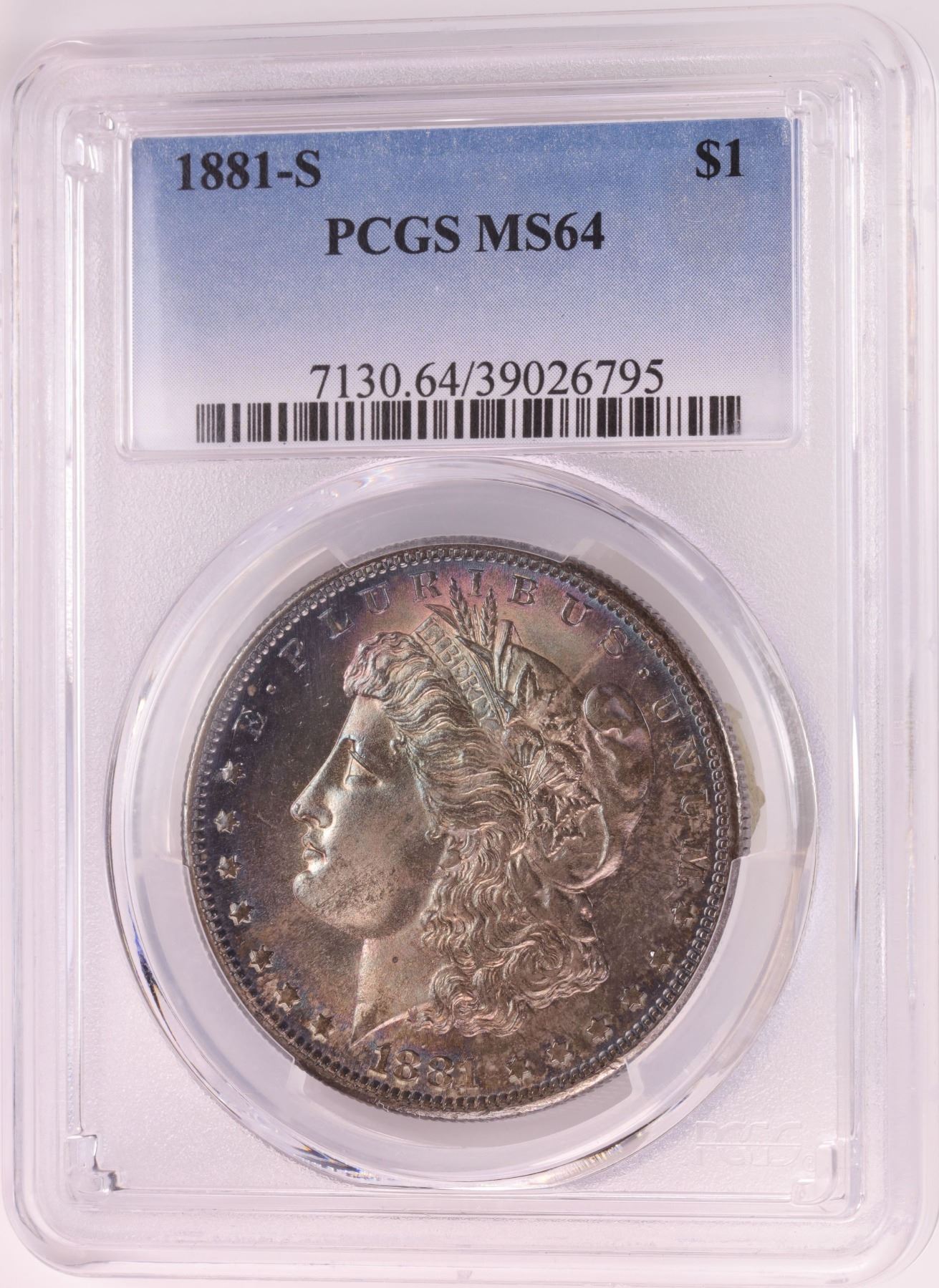 One 1881-S $1 Morgan Silver Dollar Coin PCGS MS64 Nice Toning.