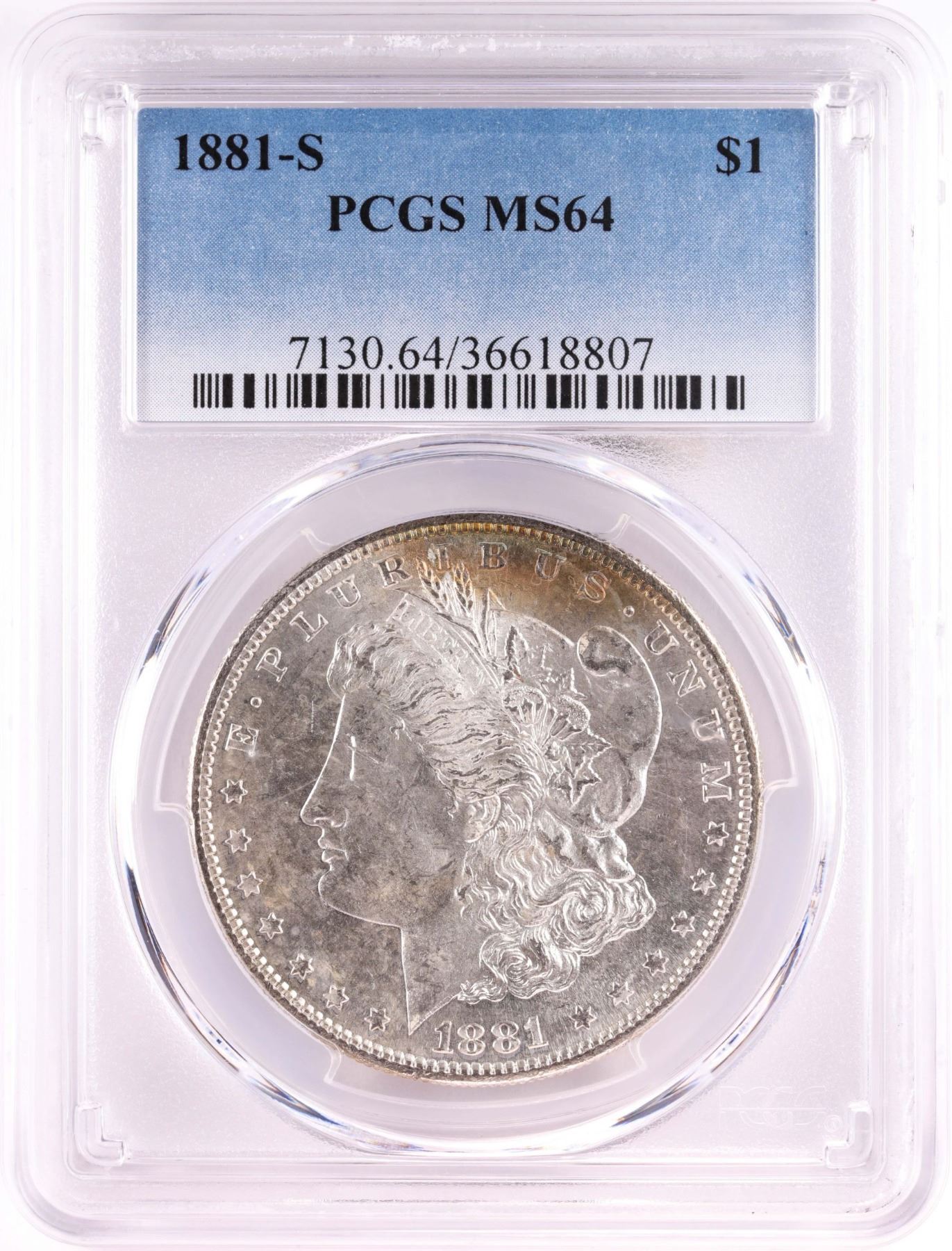 One 1881-S $1 Morgan Silver Dollar Coin PCGS MS64 Nice Toning.