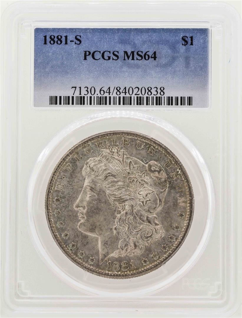 One 1881-S $1 Morgan Silver Dollar Coin PCGS MS64. PCGS Graded.