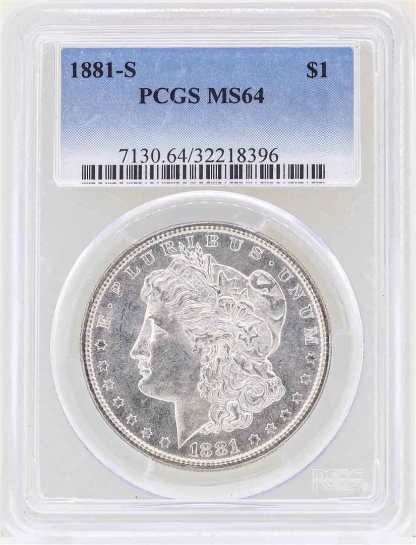 One 1881-S $1 Morgan Silver Dollar Coin PCGS MS64. PCGS Graded.