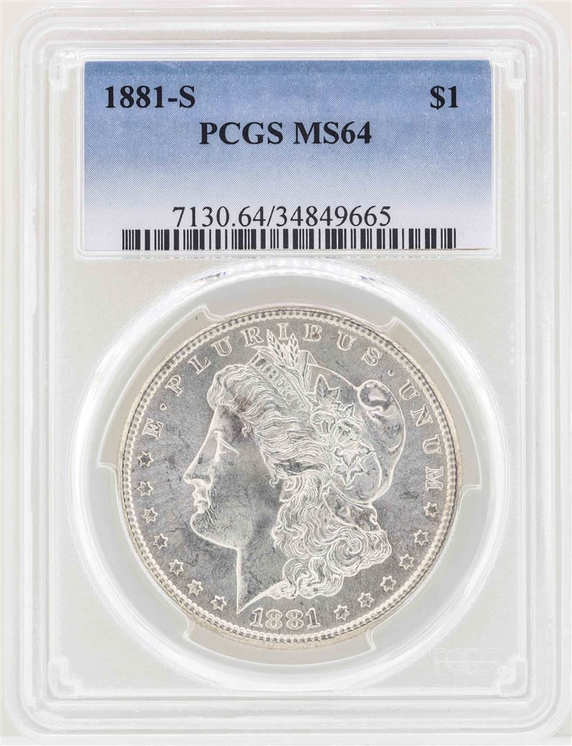 One 1881-S $1 Morgan Silver Dollar Coin PCGS MS64. PCGS Graded.