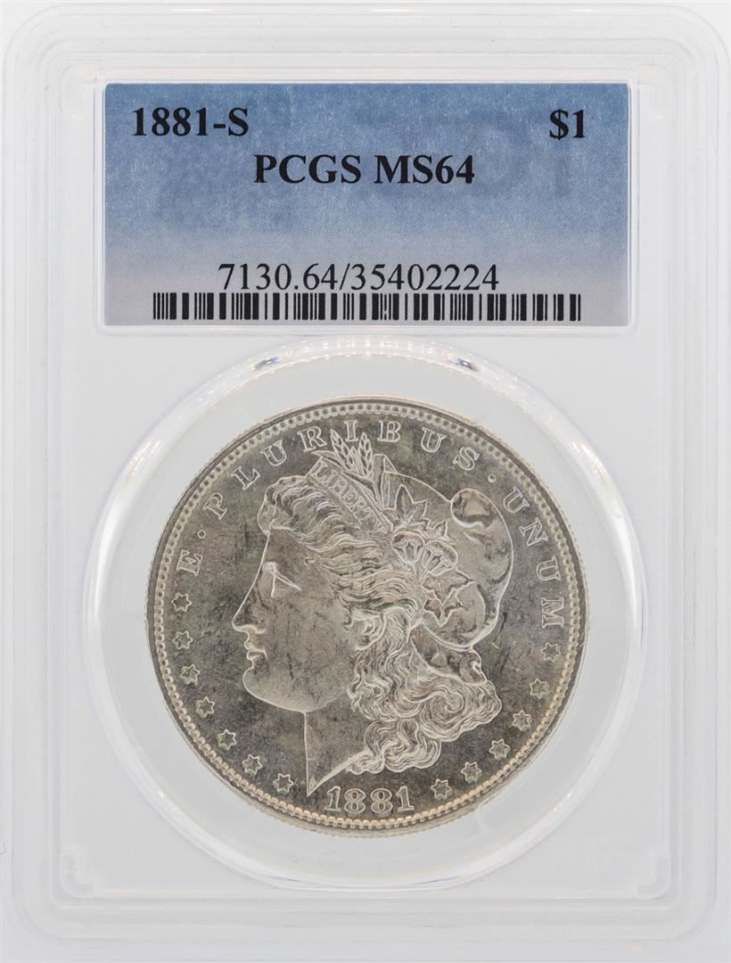 One 1881-S $1 Morgan Silver Dollar Coin PCGS MS64. PCGS Graded.