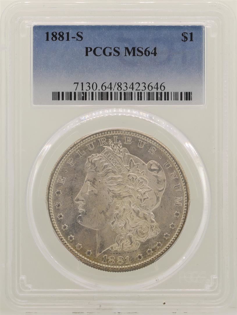 One 1881-S $1 Morgan Silver Dollar Coin PCGS MS64. PCGS Graded.