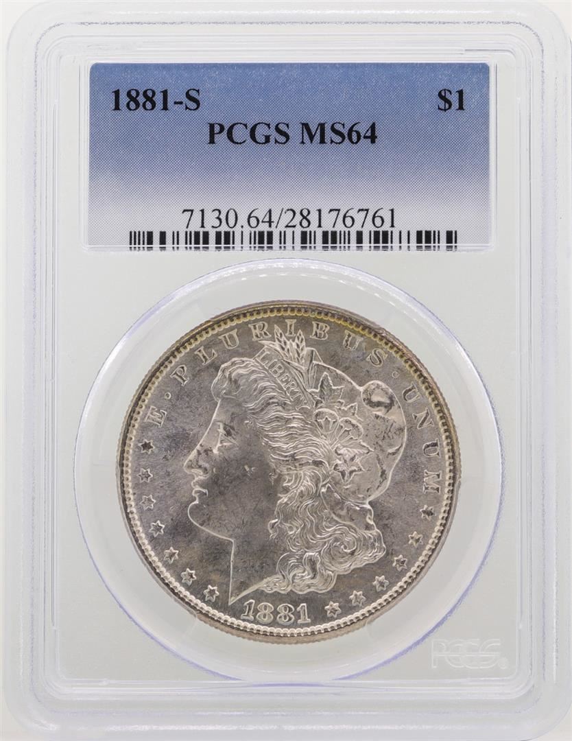 One 1881-S $1 Morgan Silver Dollar Coin PCGS MS64. PCGS Graded.