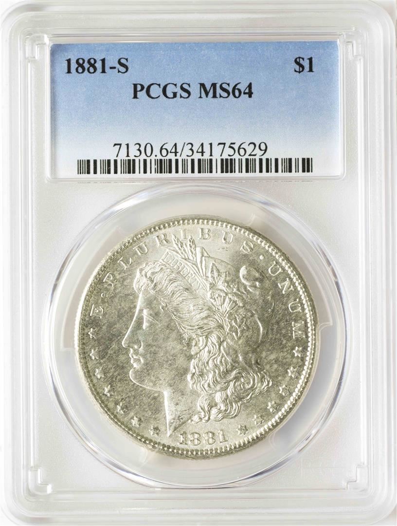 One 1881-S $1 Morgan Silver Dollar Coin PCGS MS64. PCGS Graded.