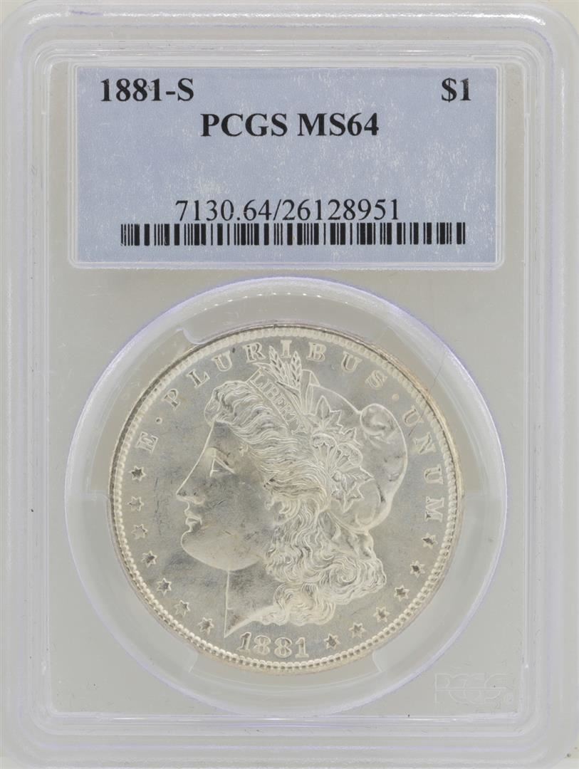 One 1881-S $1 Morgan Silver Dollar Coin PCGS MS64. PCGS Graded.