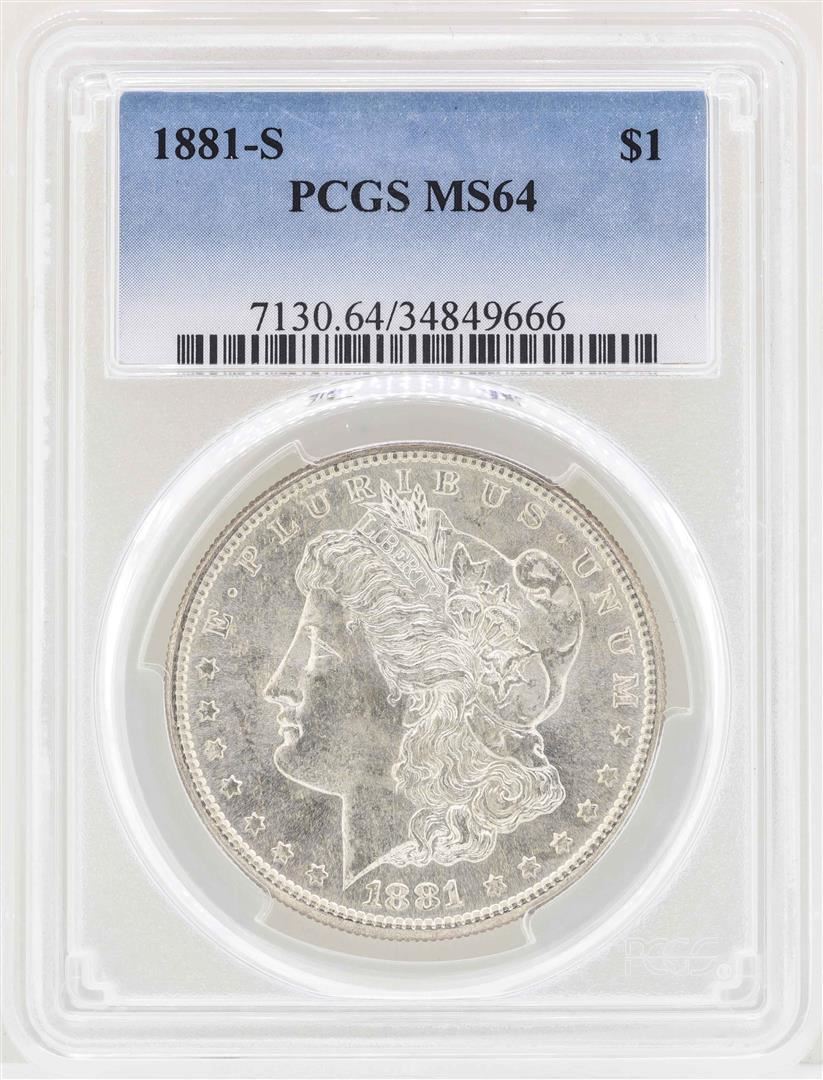 One 1881-S $1 Morgan Silver Dollar Coin PCGS MS64. PCGS Certified.