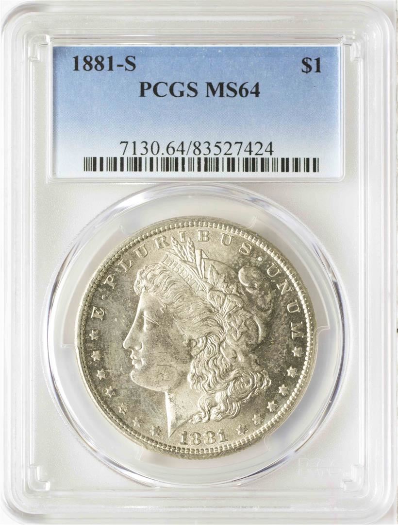 One 1881-S $1 Morgan Silver Dollar Coin PCGS MS64. PCGS Graded.