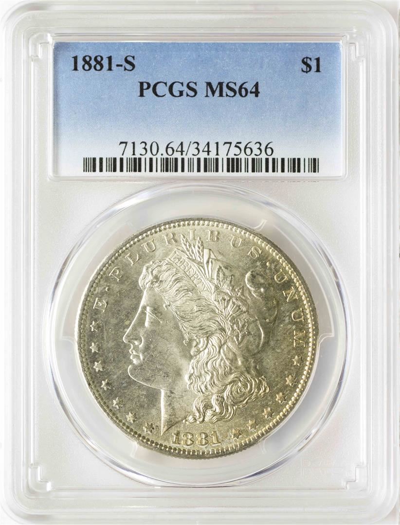 One 1881-S $1 Morgan Silver Dollar Coin PCGS MS64. PCGS Graded.